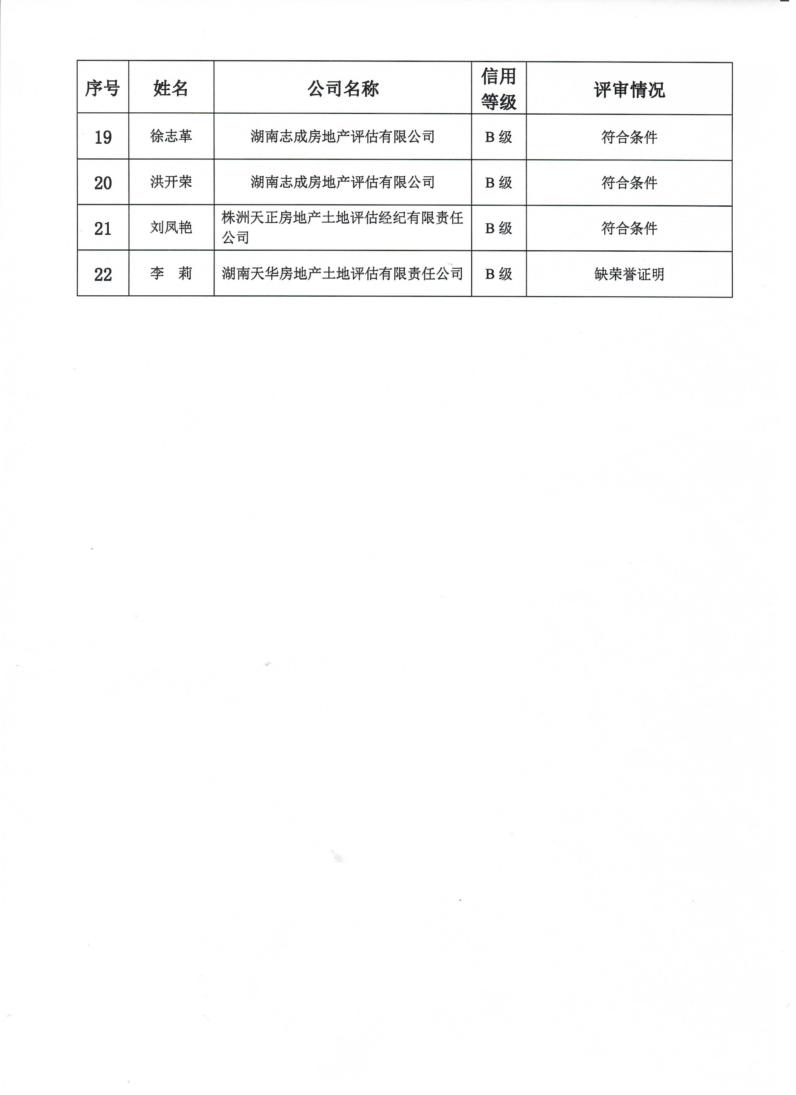 關于湖南省注冊房地產估價師執業等級評定情況的公示