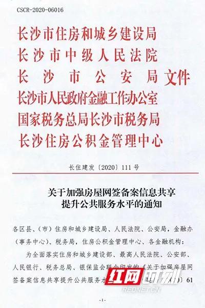 紅網(wǎng)時刻11月9日訊(記者 岳瑾)為確保房地產(chǎn)市場平穩(wěn)健康發(fā)展,日前,長沙市住房和城鄉(xiāng)建設(shè)局等六部門印發(fā)了《關(guān)于加強房屋網(wǎng)簽備案信息共享提升公共服務(wù)水平的通知》(以下簡稱《通知》)。《通知》分別從健全房屋交易網(wǎng)簽監(jiān)管系統(tǒng)、強化房地產(chǎn)金融審慎管理、完善住房公積金貸款和提取服務(wù)、優(yōu)化房屋交易納稅申報服務(wù)、提升流動人口管理服務(wù)水平、提高司法案件執(zhí)行效率、加快推進系統(tǒng)對接信息共享和組織落實七個方面,進一步推動長沙市房屋網(wǎng)簽備案信息共享工作,優(yōu)化行政效率,提升服務(wù)水平。本《通知》自11月16日起執(zhí)行,有效期為5年。