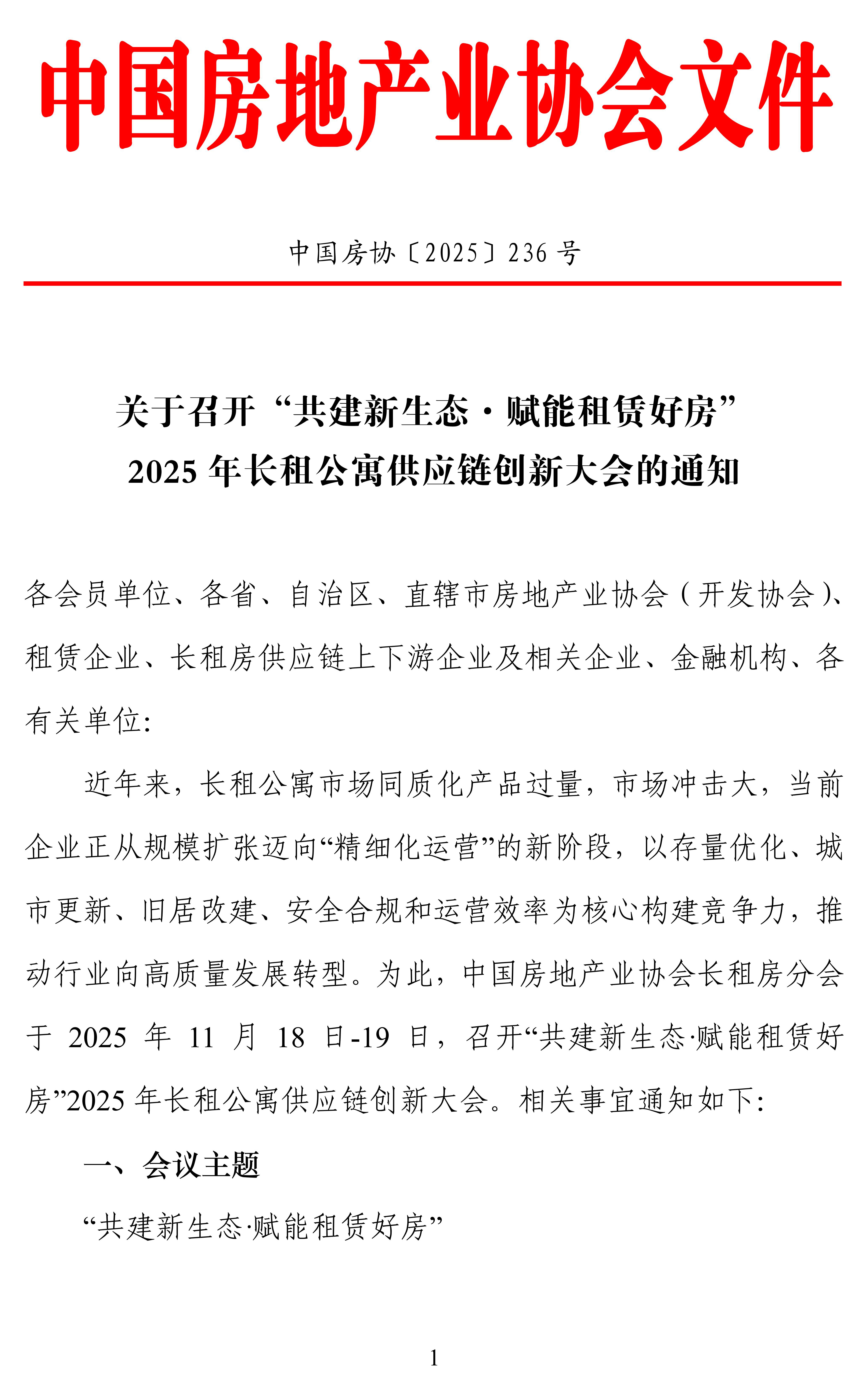 中房協(xié)關于召開“共建新生態(tài)·賦能租賃好房” 2025年長租公寓供應鏈創(chuàng)新大會的通知