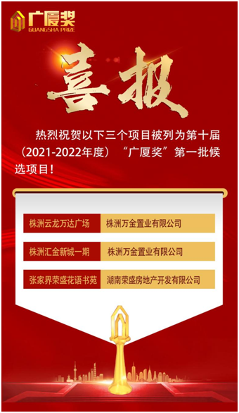 3月31日,由中國房地產(chǎn)業(yè)協(xié)會、住房和城鄉(xiāng)建設(shè)部住宅產(chǎn)業(yè)化促進中心共同組織的第十屆(2021-2022年度) “廣廈獎”第一批候選項目名單重磅出爐!經(jīng)湖南省房地產(chǎn)業(yè)協(xié)會推薦的三個項目榮獲殊榮!