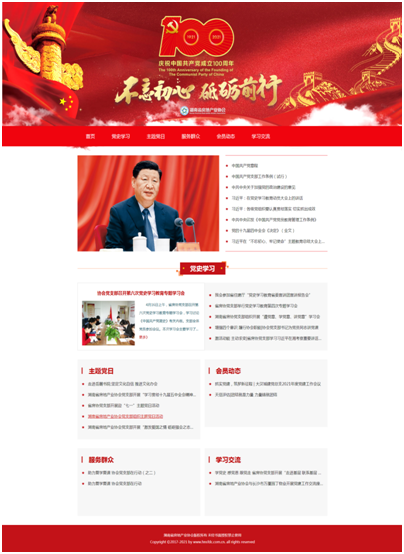今年是中國共產(chǎn)黨成立100周年,為積極響應(yīng)黨中央號召,湖南省房地產(chǎn)業(yè)協(xié)會(huì)官網(wǎng)“慶祝中國共產(chǎn)黨成立100周年”專欄于4月27日上線啟動(dòng)。專欄分為“黨史理論”“黨史學(xué)習(xí)”“主題黨日”“會(huì)員動(dòng)態(tài)”“服務(wù)群眾”“學(xué)習(xí)交流”等內(nèi)容。