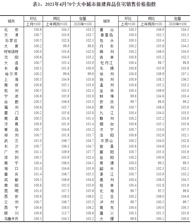 2021年4月份,國家統(tǒng)計局統(tǒng)計監(jiān)測的70個大中城市新建商品住宅銷售價格漲幅總體有所擴(kuò)大,二手住宅漲幅有升有落。針對這一現(xiàn)象,國家統(tǒng)計局城市司首席統(tǒng)計師繩國慶做出解讀: