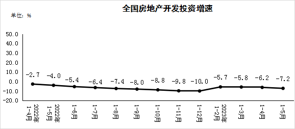 1-5月全國(guó)房地產(chǎn)開(kāi)發(fā)投資同比下降7.2%