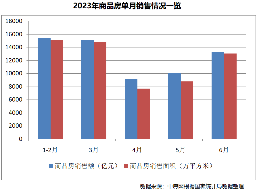 從單月銷售情況來看,根據(jù)國家統(tǒng)計局數(shù)據(jù)拆分后測算,6月份商品房銷售面積為13075萬平方米,環(huán)比上漲48.51%,同比下降28.10%。商品房銷售額13305億元,環(huán)比上漲32.56%,同比下降24.98%。
