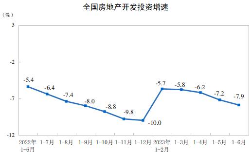 具體來看,房地產(chǎn)開發(fā)投資增速降幅繼續(xù)擴大。上半年全國房地產(chǎn)開發(fā)投資58550億元,同比下降7.9%;其中,住宅投資44439億元,下降7.3%。