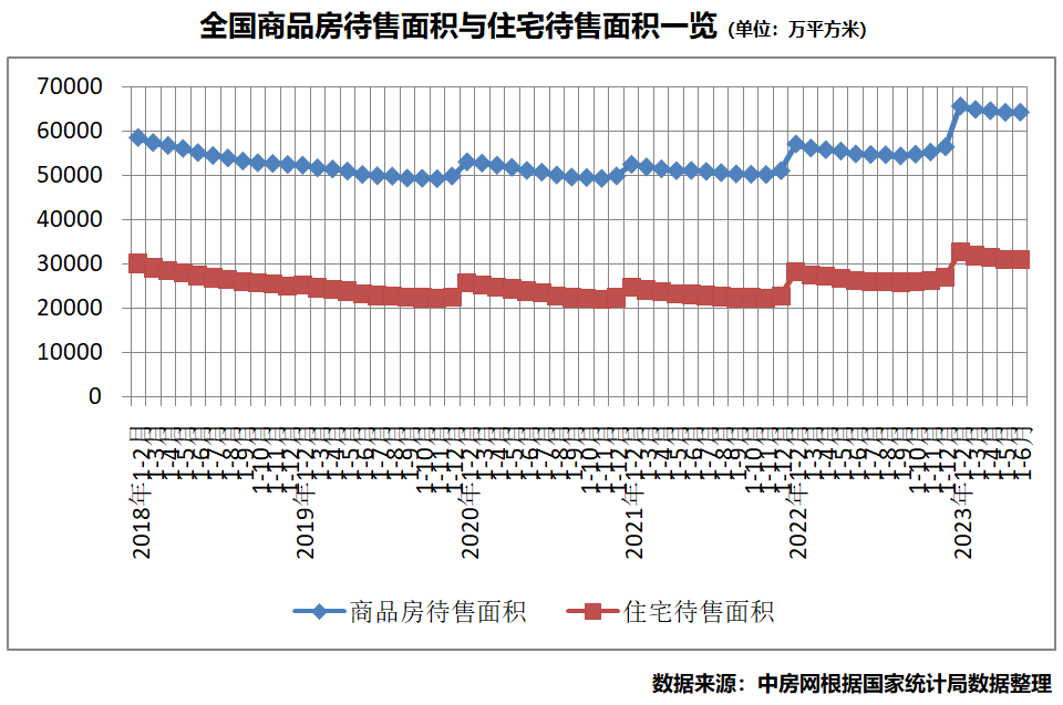 庫存方面,6月份商品房待售面積在連續(xù)三個月下降后有所回升,而住宅待售面積則繼續(xù)小幅下降。根據(jù)國家統(tǒng)計局數(shù)據(jù),截至6月末,商品房待售面積64159萬平方米,同比增長17.0%。其中,住宅待售面積為31006萬平方米,同比增長18.0%。