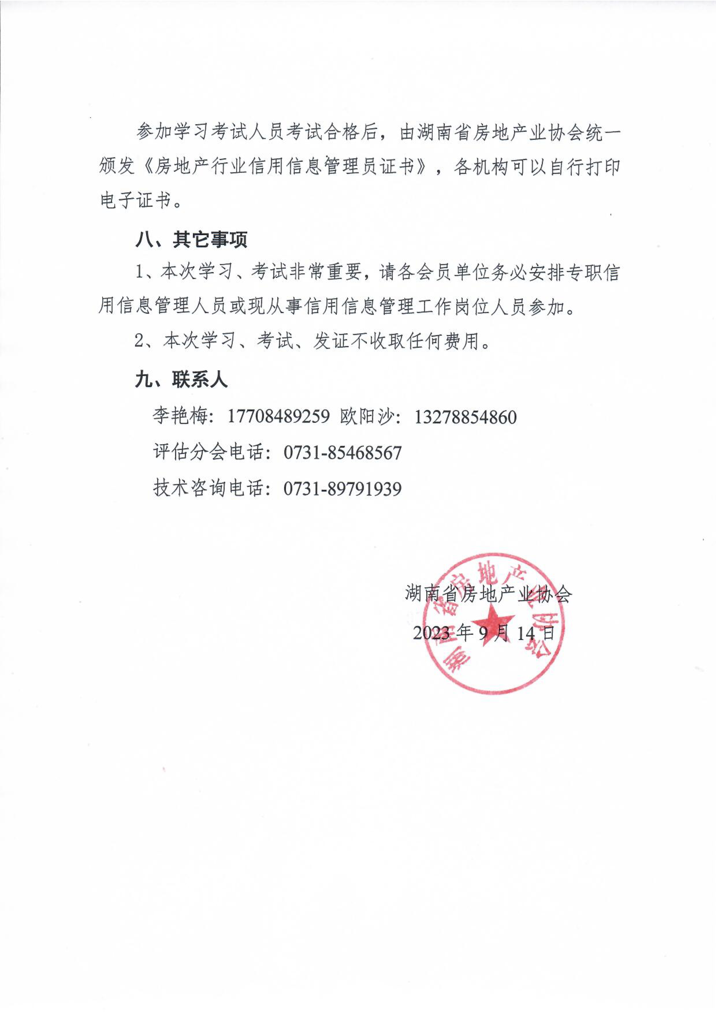 參加學(xué)習(xí)考試人員考試合格后,由湖南省房地產(chǎn)業(yè)協(xié)會(huì)統(tǒng)一頒發(fā)《房地產(chǎn)行業(yè)信用信息管理員證書(shū)》,各機(jī)構(gòu)可以自行打印電子證書(shū)。