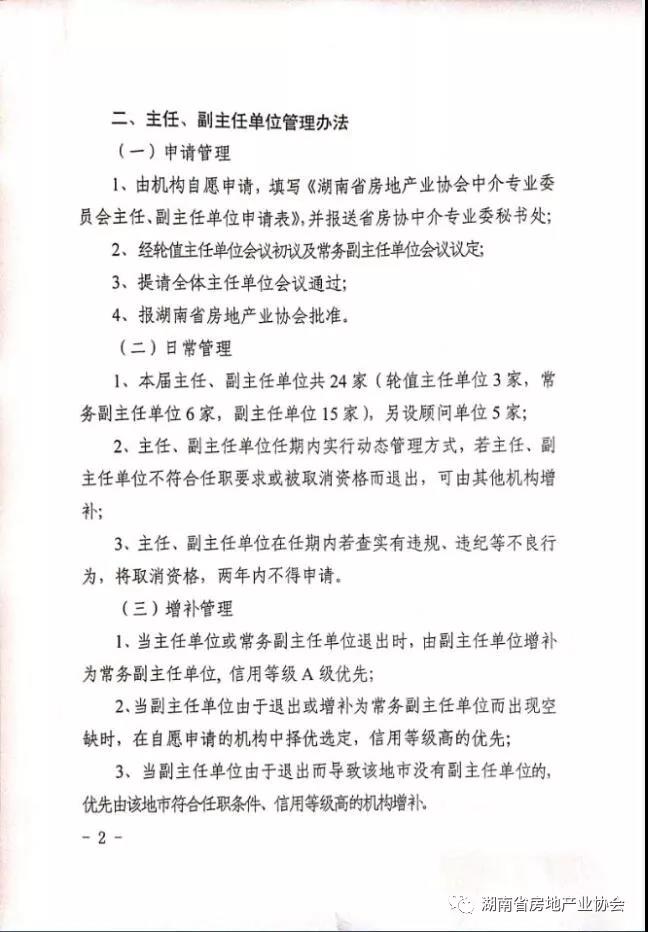 湖南省房地產業協會中介專業委員會主任、副主任單位管理辦法及會議議事規則