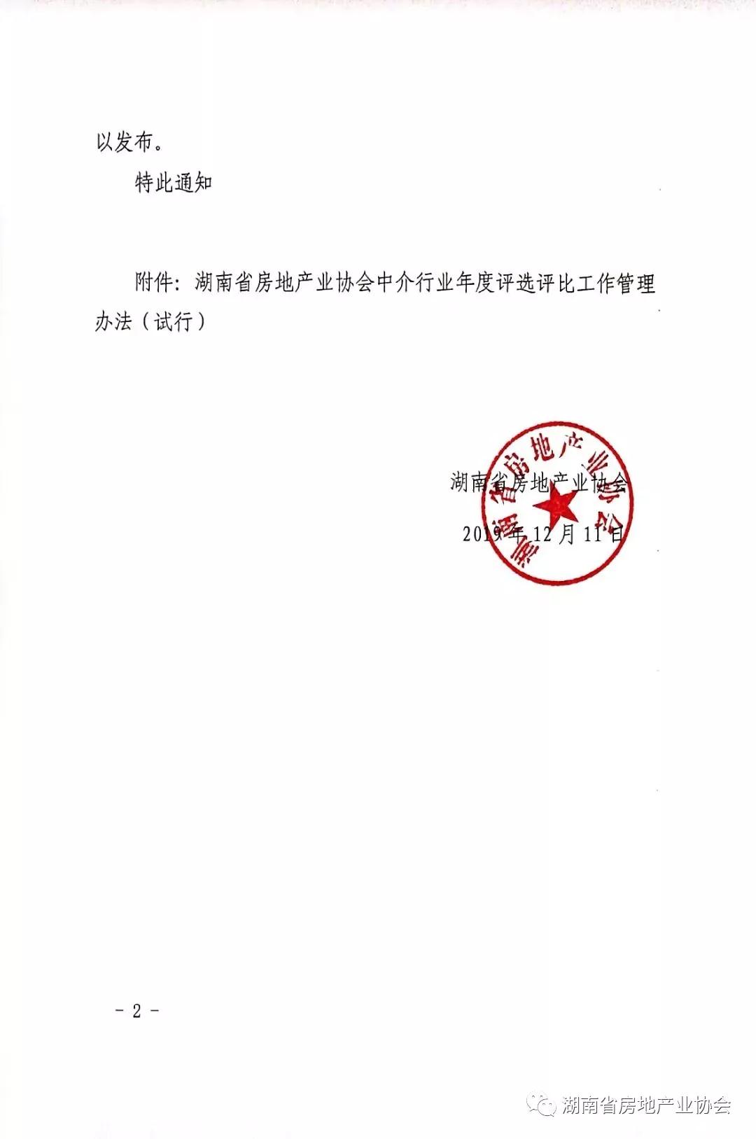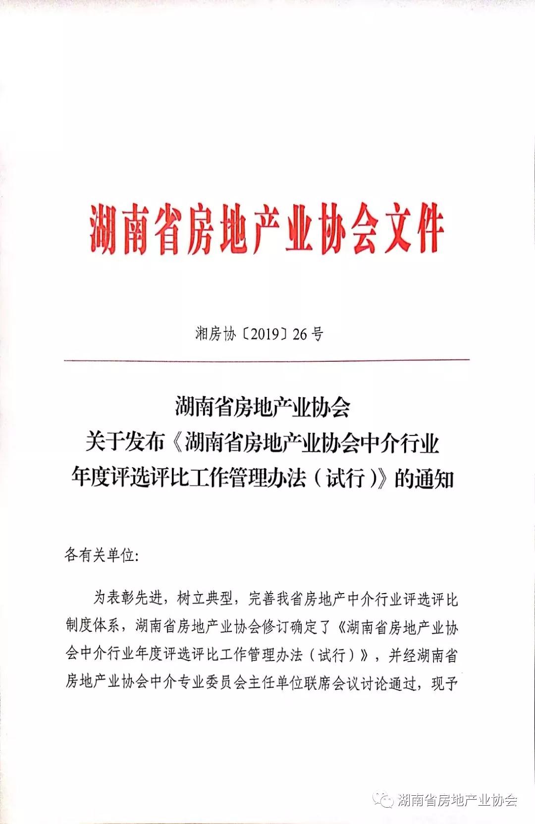 關(guān)于發(fā)布《湖南省房地產(chǎn)業(yè)協(xié)會中介行業(yè) 年度評選評比工作管理辦法(試行)》的通知