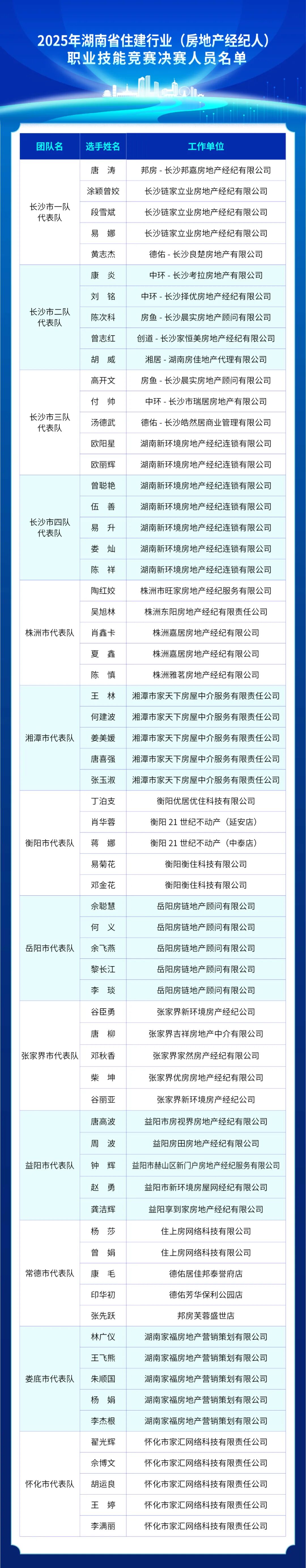 附件:2025年湖南省住建行業(yè)(房地產(chǎn)經(jīng)紀(jì)人)職業(yè)技能競賽決賽人員名單