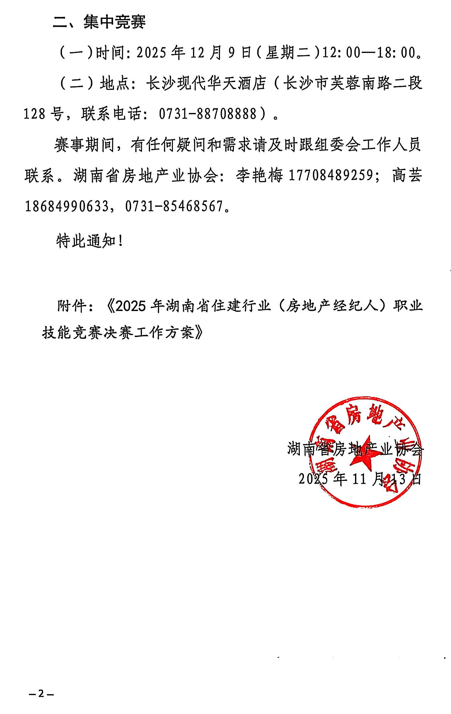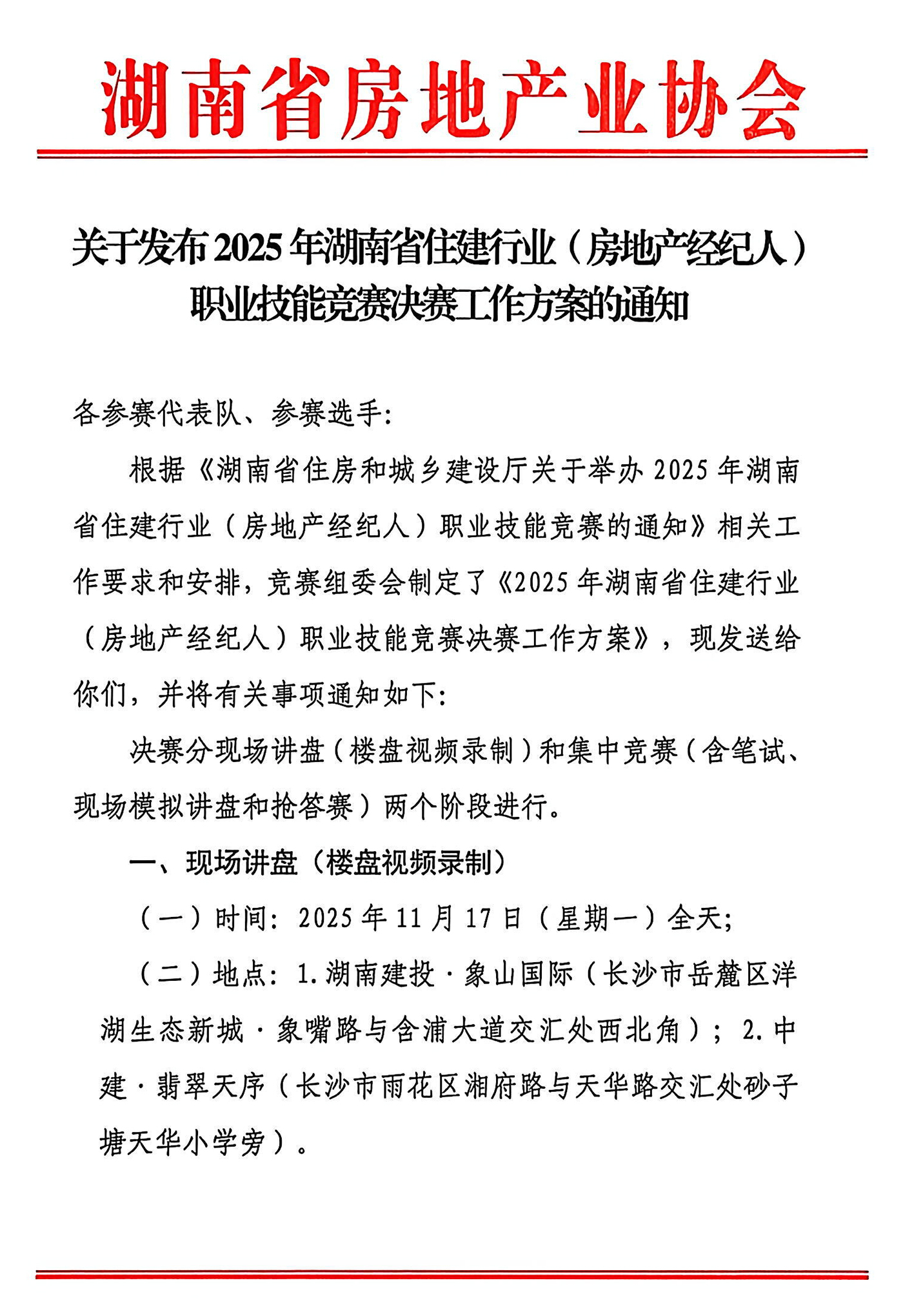 關于發布 2025 年湖南省住建行業(房地產經紀人)職業技能競賽決賽工作方案的通知
