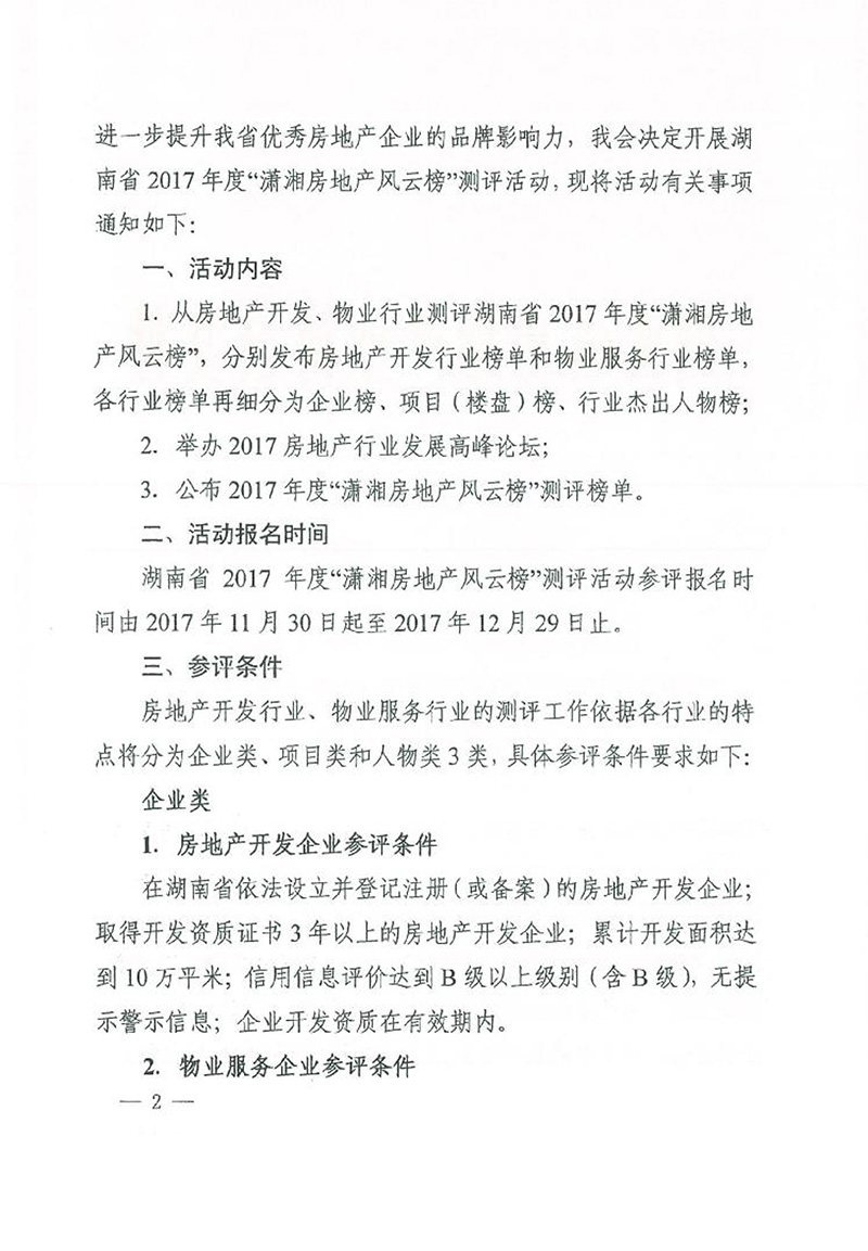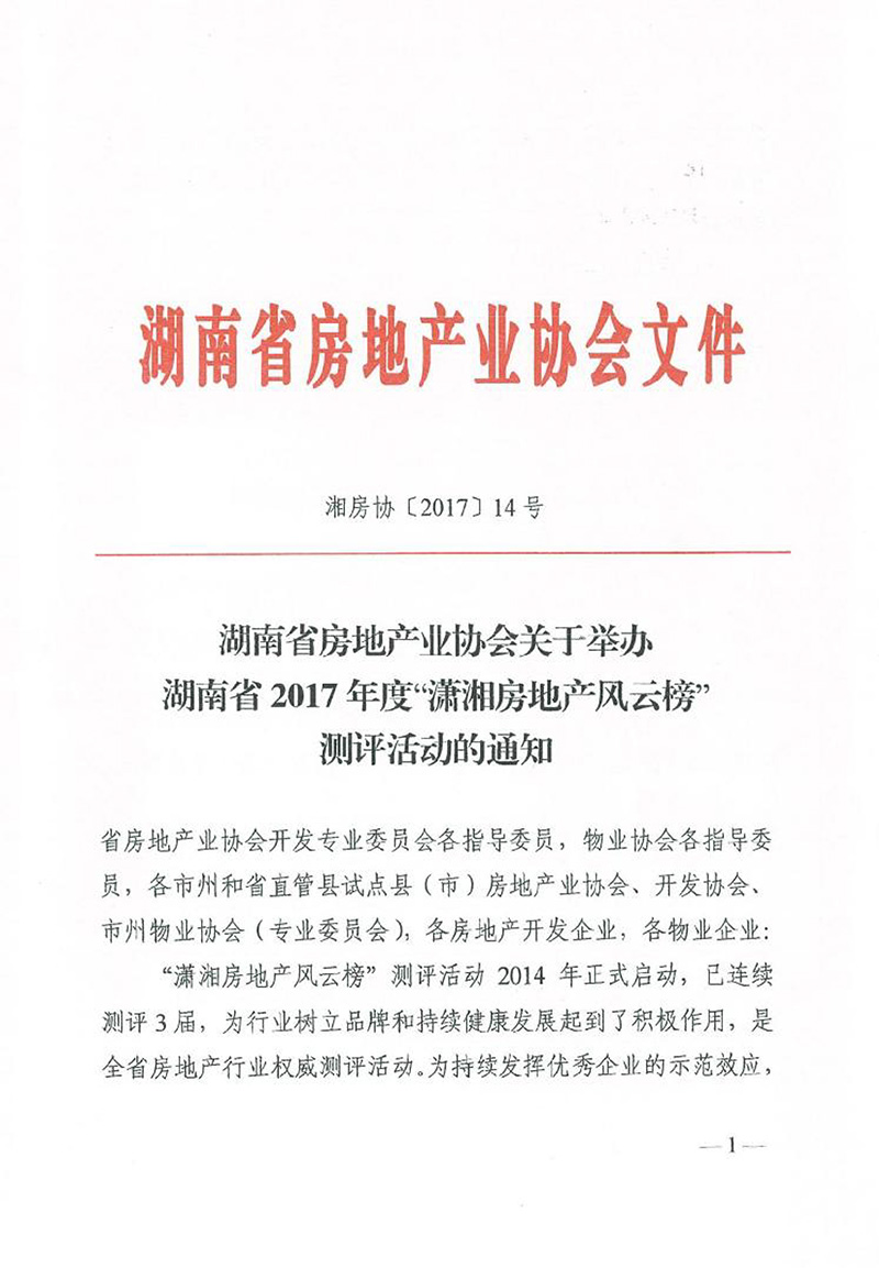 關(guān)于舉辦湖南省2017年度“瀟湘房地產(chǎn)風(fēng)云榜”測(cè)評(píng)活動(dòng)的通知