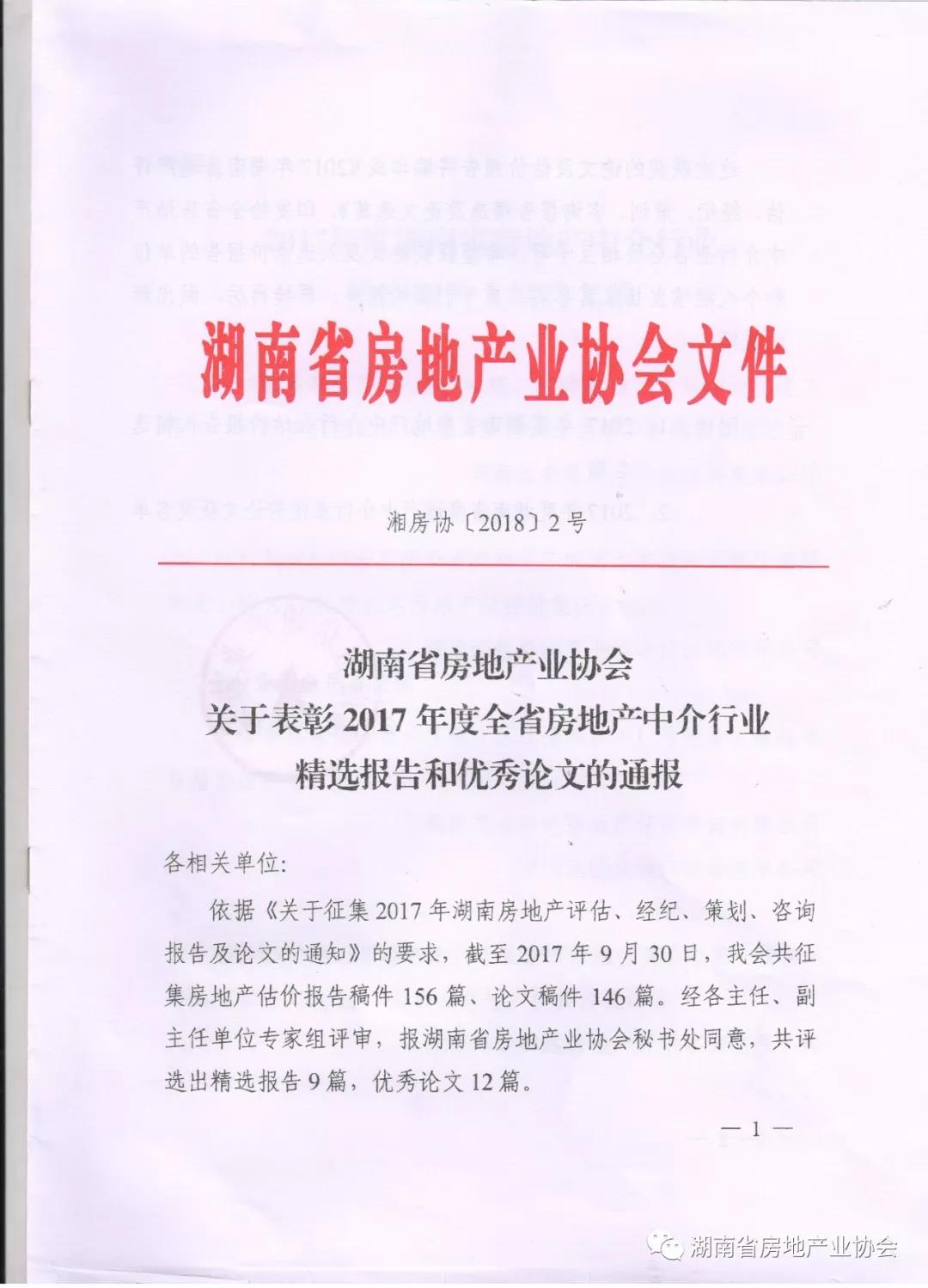 表彰2017年度全省房地產中介行業 精選報告和優秀論文