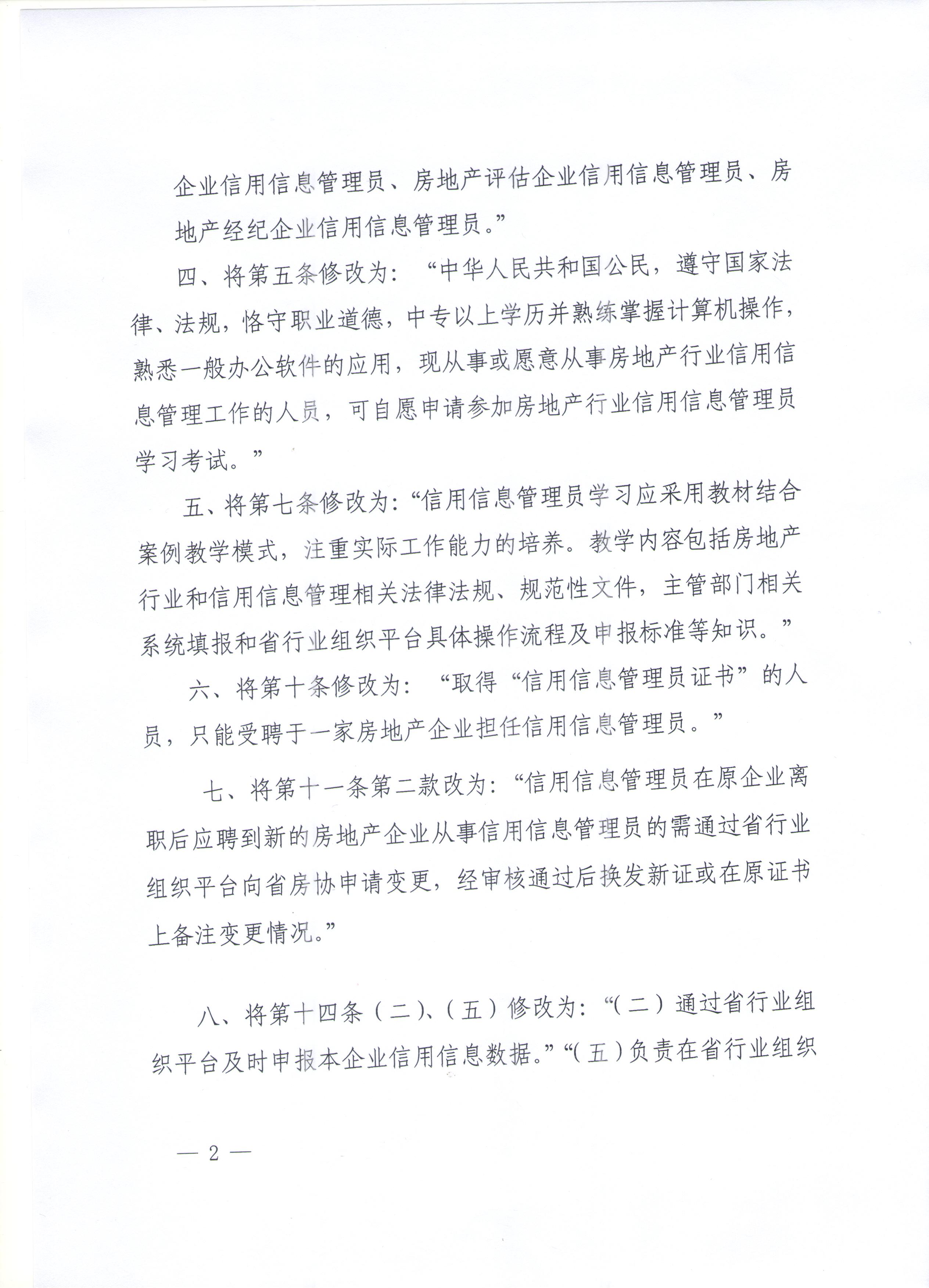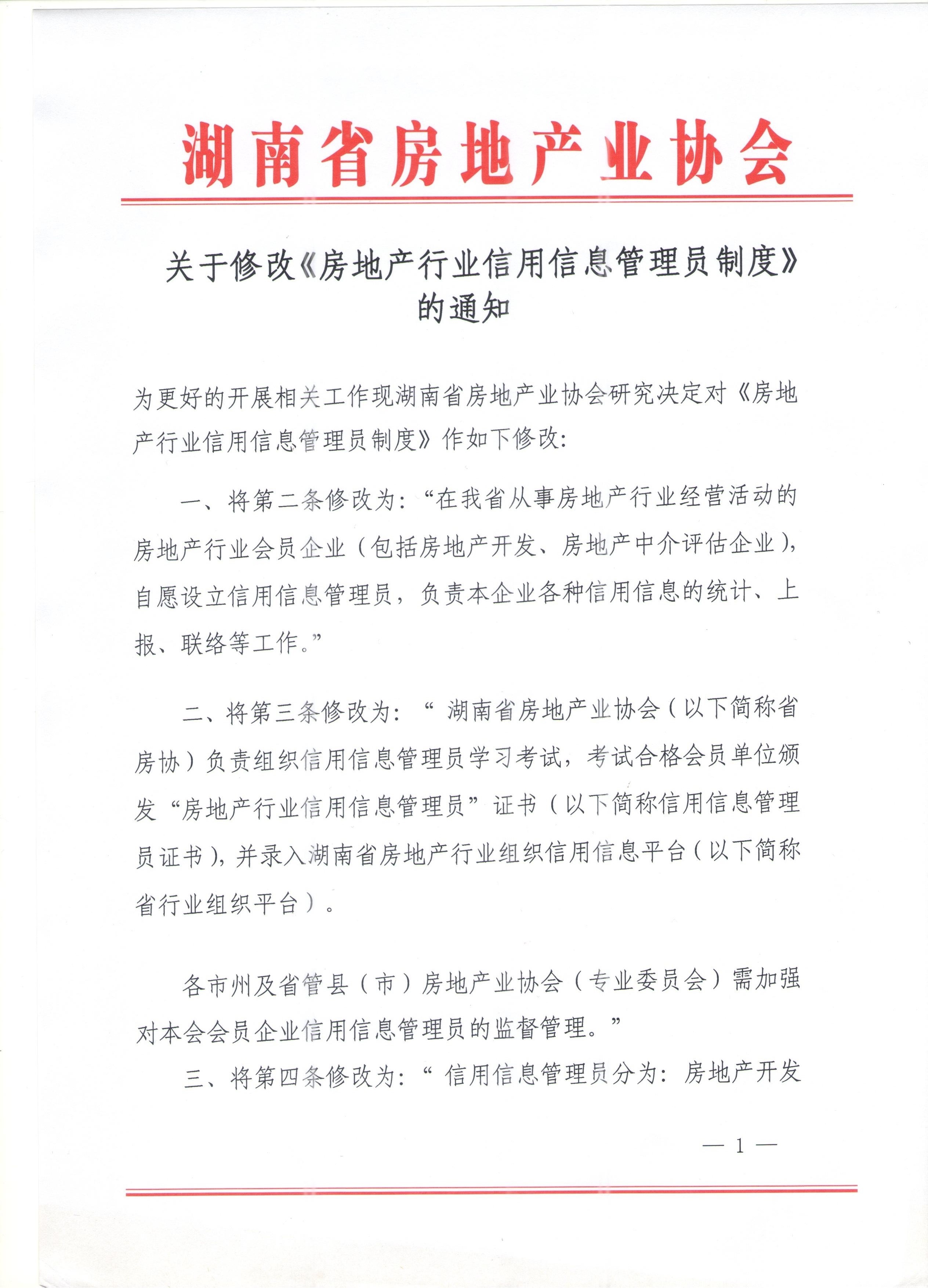 關(guān)于修改《房地產(chǎn)行業(yè)信用信息管理員制度》的通知