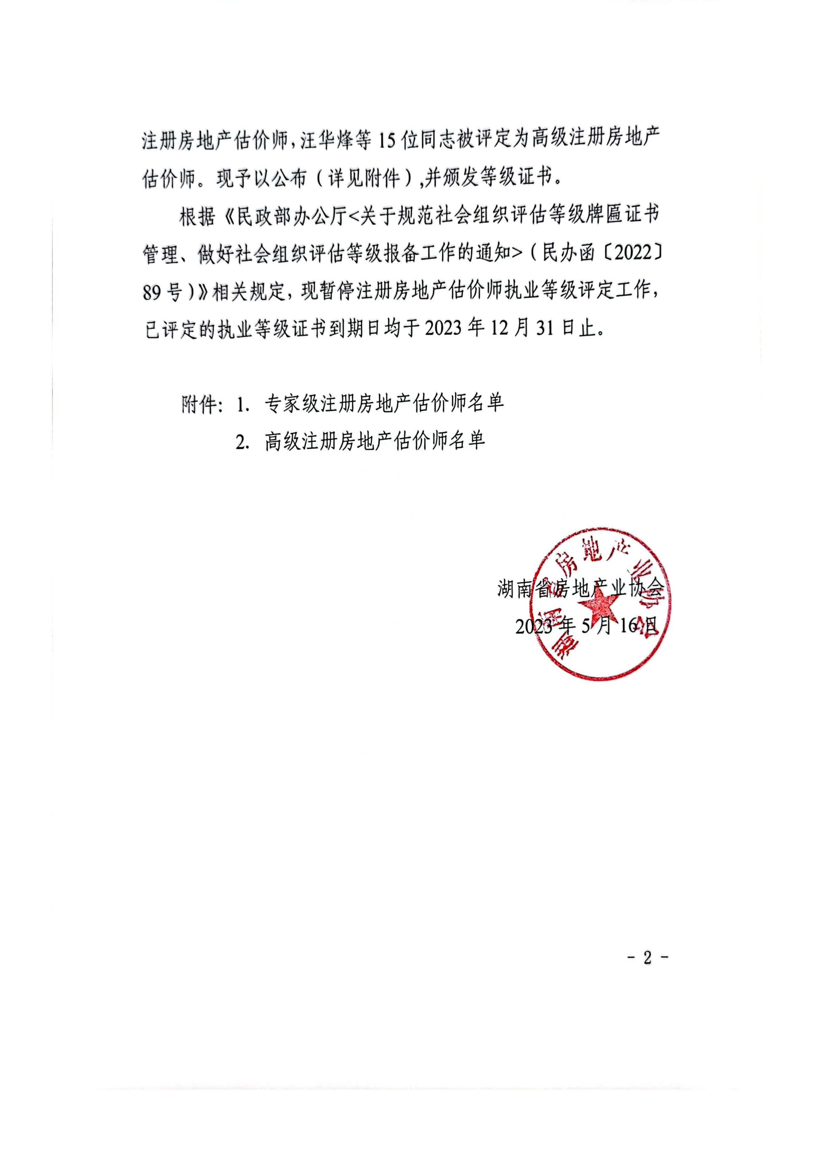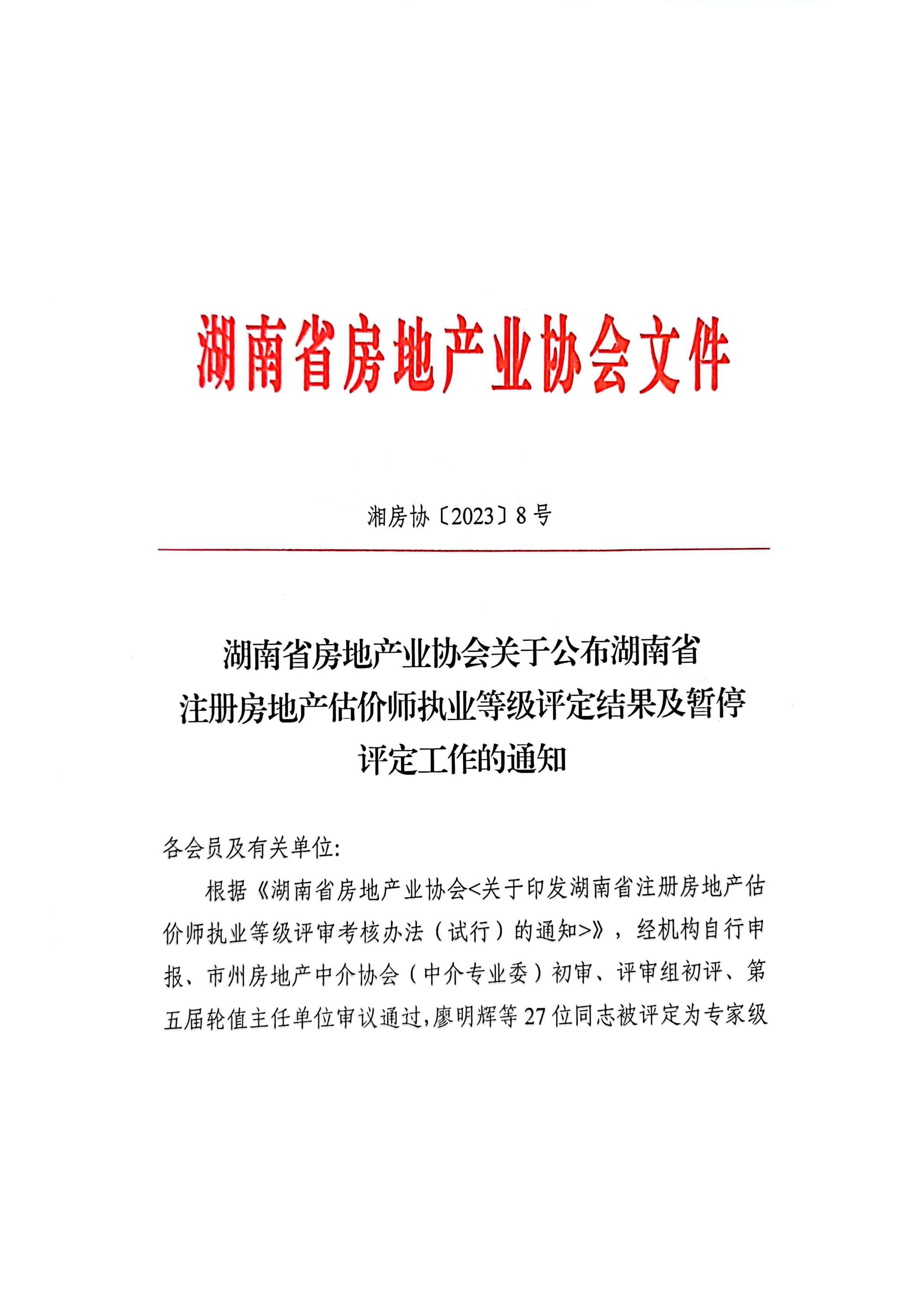 關(guān)于公布湖南省注冊(cè)房地產(chǎn)估價(jià)師執(zhí)業(yè)等級(jí)評(píng)定結(jié)果及暫停評(píng)定工作的通知