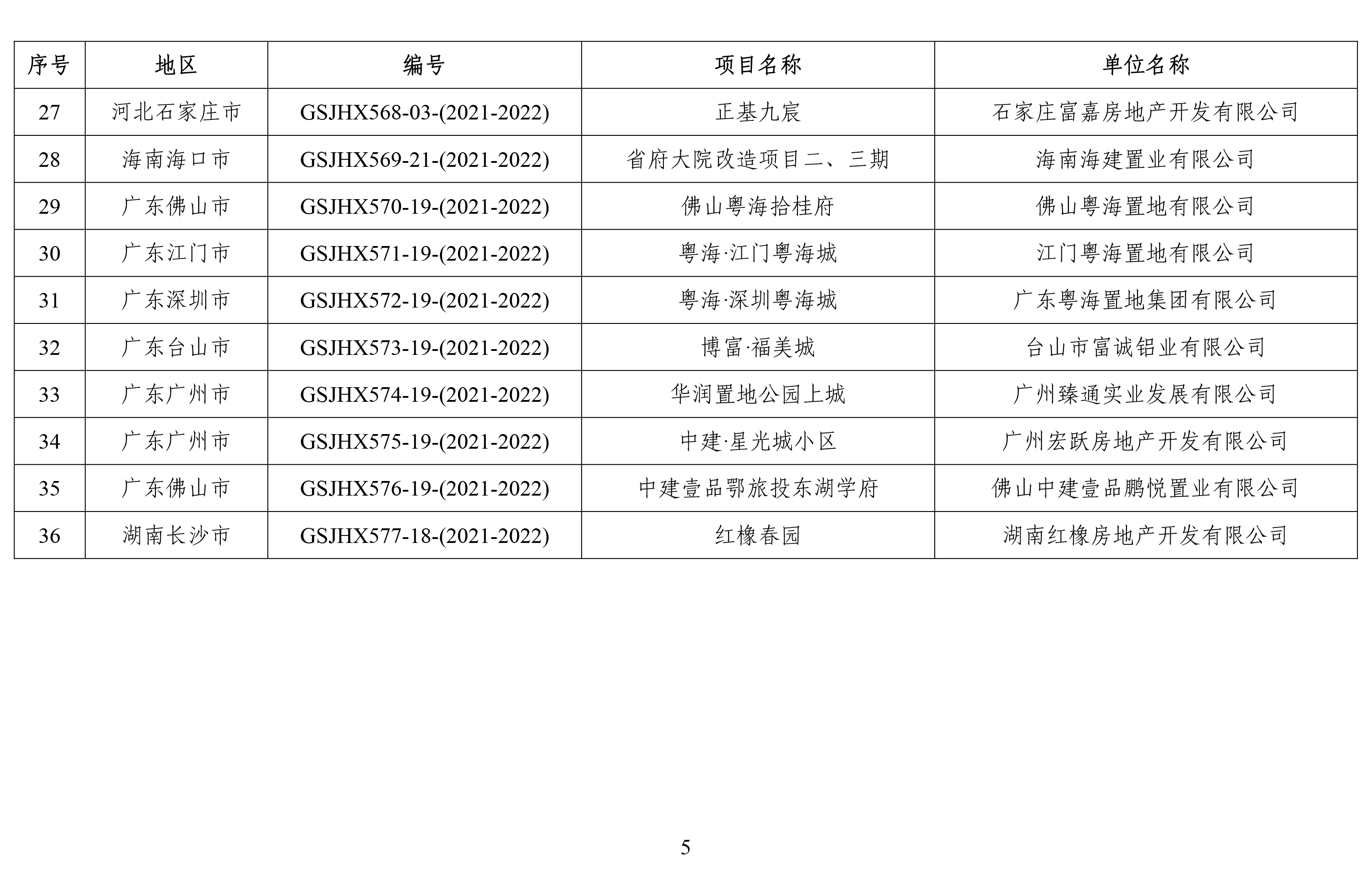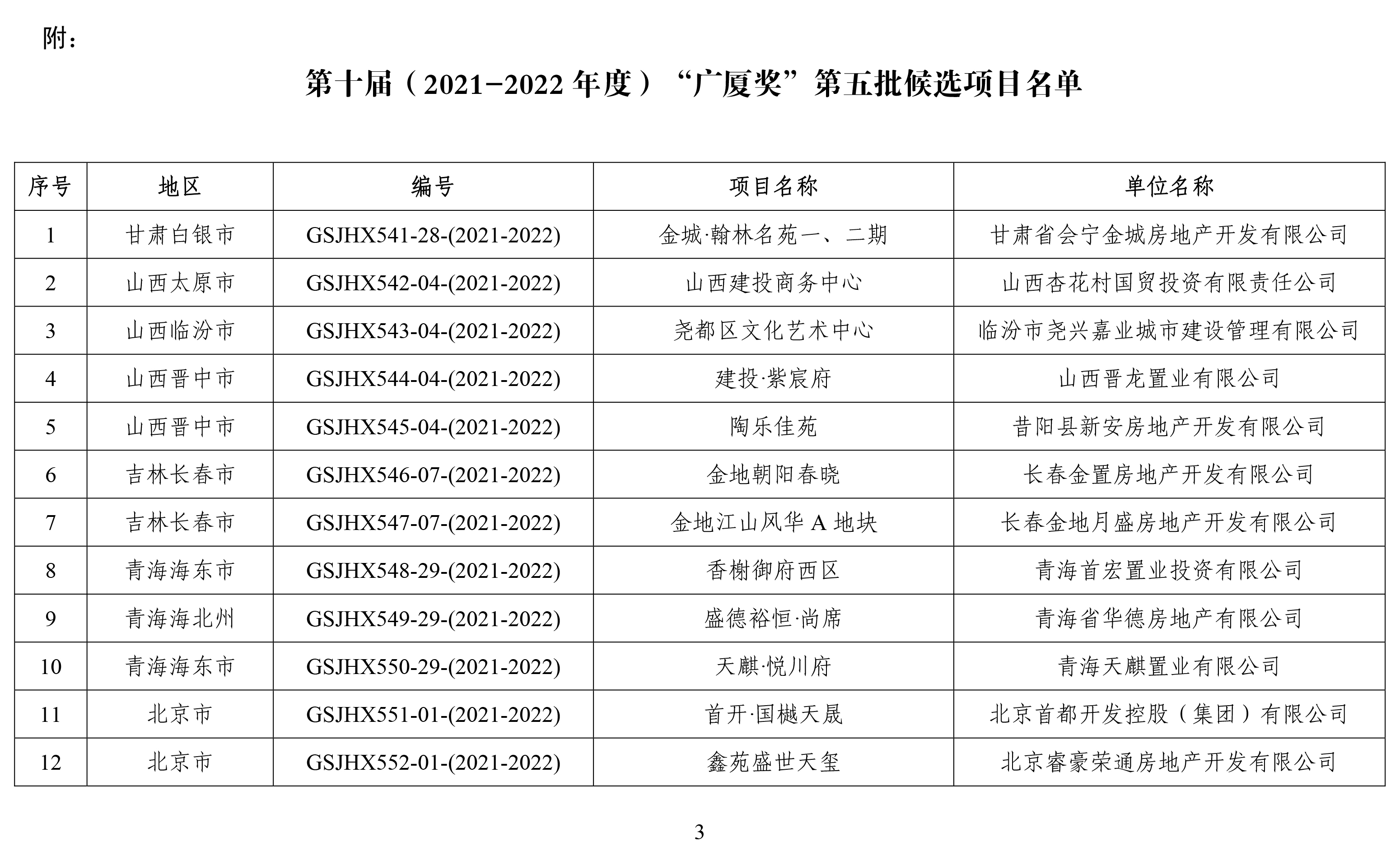 關于列入第十屆(2021-2022年度)“廣廈獎”第五批候選項目的通報