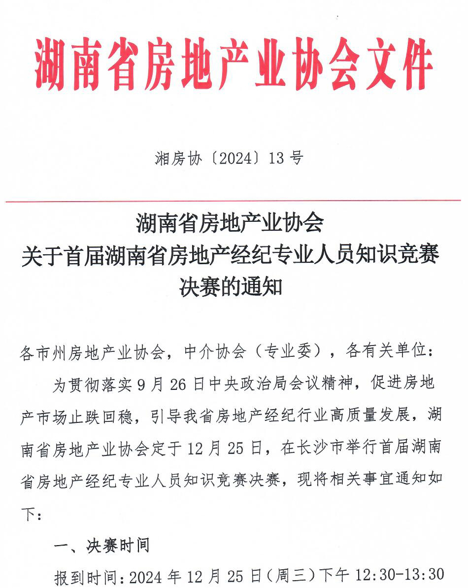 關(guān)于首屆湖南省房地產(chǎn)經(jīng)紀(jì)專業(yè)人員知識(shí)競(jìng)賽決賽的通知